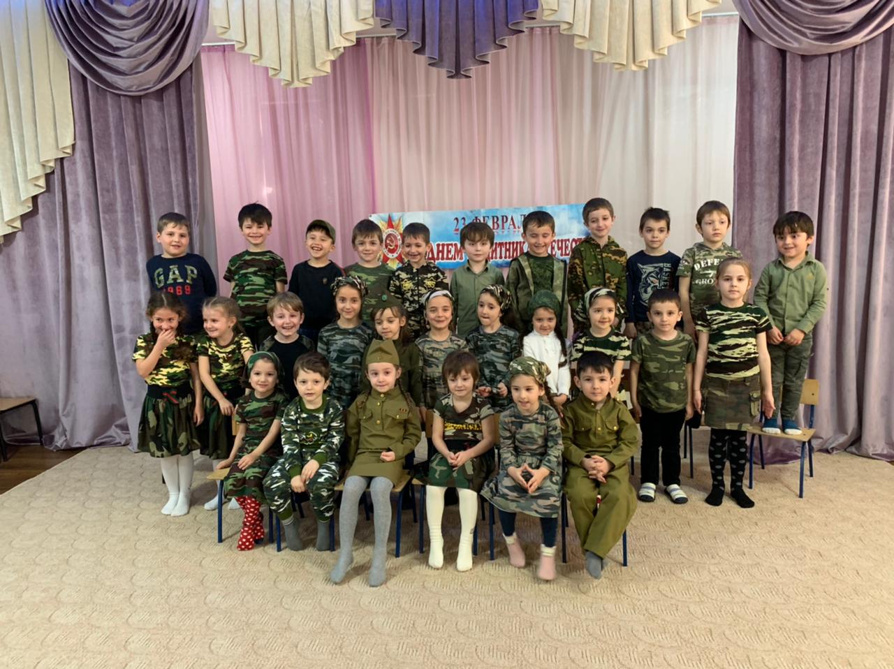 23.02.2021В МБДОУ «Детский сад № 1 «Сказка» с. Шатой состоялся праздник, посвященный к Дню Защитника Отечества-это был хороший повод для воспитания у дошкольников чувства патриотизма, сопричастности к лучшим традициям своей Родины, формирования у детей гордости за славных защитников Отечества. Это праздник всех людей, которые стоят на страже нашей Родины. Это праздник настоящих мужчин — смелых и отважных, ловких и надёжных, а также праздник мальчиков, которые вырастут и станут защитниками Отечества, а пока мы знакомим детей и рассказываем, что такое армия, почему 23 февраля — День Защитника Отечества. Воспитатели провели праздничные мероприятия. Такие мероприятия, проведённые с детьми, закладывают в их душах зёрнышки патриотизма, чувства долга перед Родиной.